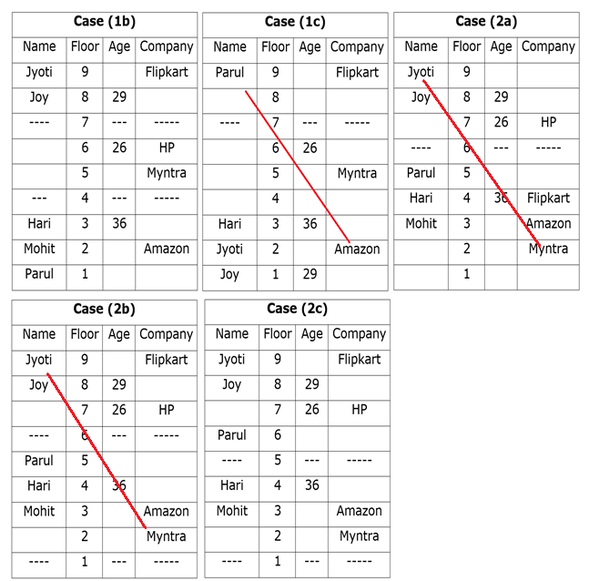 Case (1a) is not valid as the one who works in Myntra neither lives on lowermost floor nor adjacent to the one who works in Flipkart.