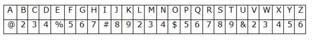 वर्णमाला श्रृंखला A-Z में, स्वरों को छोड़कर प्रत्येक अक्षर को A से Z तक 2 से 9 के रूप में कोडित किया जाता है (उदाहरण के लिए। B को 2 के रूप में कोडित किया गया है और C को 3 के रूप में कोडित किया गया है और जब तक K को 9 कोडित किया जाता है, फिर L को 2 के रूप में कोडित किया जाता है। और इसी तरह Z तक)।