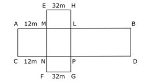 - E, F, G और H एक अन्य आयताकार क्षेत्र के शीर्ष बिंदु हैं, जिसका क्षेत्रफल 2304 मी2 है, इस तरह से कि क्रमशः रेखा EF रेखा AB, को M पर और रेखा CD,को N पर प्रतिच्छेदित करती है।