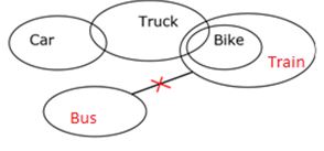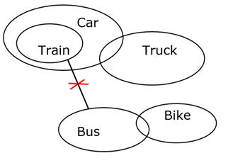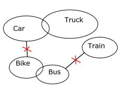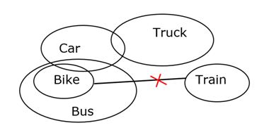 स्पष्ट रूप से, ट्रक और ट्रेन के बीच कोई सीधा संबंध नहीं है, इस प्रकार हम यह नहीं कह सकते कि “कुछ ट्रेन ट्रक नहीं हैं”।