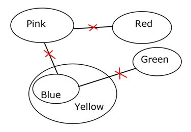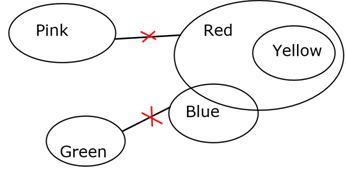 स्पष्ट रूप से, कुछ हरे लाल हैं और कोई हरा नीला नहीं है, इस प्रकार “सभी लाल नीले नहीं हो सकते हैं”।