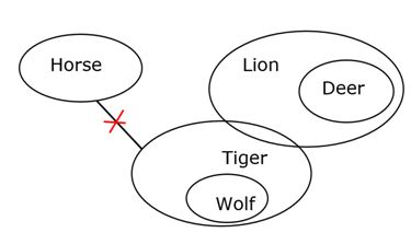स्पष्ट रूप से, चीते और भेड़िये के बीच कोई सीधा संबंध नहीं है, इस प्रकार हम यह नहीं कह सकते कि “कुछ चीते भेड़िये नहीं हैं” सत्य है।