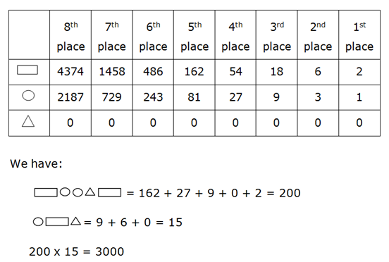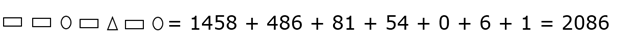 जब आयत इकाई अंक में होता है तो उसका मान 2 होता है और जब वह दसियों अंक में होता है तो उसका मान 2 से 3 होता है जो 6 होता है; जब यह सौवें स्थान पर होता है, 6 का तीन बार जो 18 और इतने पर है।