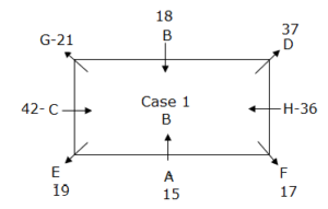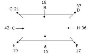 आठ व्यक्ति A, B, C, D, E, F, G और H एक आयताकार मेज के चारों ओर बैठे हैं। चार व्यक्ति मेज के बीच में बैठते हैं और वे केंद्र का सामना कर रहे हैं और चार व्यक्ति मेज के कोने पर बैठते हैं और वे केंद्र के बाहर का सामना कर हैं। उनमें से प्रत्येक अलग-अलग उम्र के थे। 19, 15, 18, 37, 21, 42, 17 और 36 | व्यक्ति जिनका नाम लगातार वर्णमाला अक्षरों से शुरू होता है, एक दूसरे के बगल में नहीं बैठता है। उपरोक्त सभी जानकारी एक ही क्रम में होना आवश्यक नहीं है।