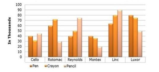 [WpProQuiz 601]Directions (1 – 5): The given bar graph shows the sales of three different products of different stationery companies for the year 2010 – 2011.
