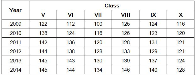 4). Number of students in class X in the year 2013 forms approximately what per cent of the total number of students in that class from all the years together?