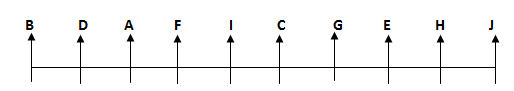 A sits second to the left of I. Only three people sits between D and C, either one of them is an immediate neighbour of A. Only three people sits between J and C, who does not sits at extreme end of the line. B sits at extreme end of the row. Only one person sits between B and A. F sits second to the right of D. Only two people sits between G and J, who is neither an immediate neighbour C nor D. J is not an immediate neighbour of A. E sits immediate left of H.
