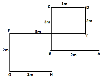 A stands 2 meters to the east of B, who stands 3 meters to the south of C. D stands 1 meter to the east of C. F stands 3 meters to the west of E. G stands 2 meters to the west of H. E stands 2 meters to the south of D. F stands 2 meters to the north of G.