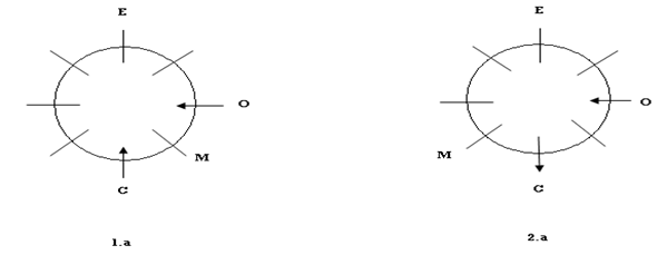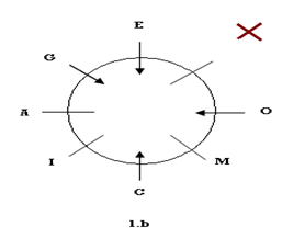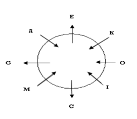E sits second to the right of O. O faces the centre. Only three people sit between C and E. M sits to the immediate right of C. A sits to the immediate right of G. G and C faces the same direction (i.e., if G faces the centre then C also faces the centre and vice-versa). I sits third to the right of E. I is not an immediate neighbour of A. E and I faces opposite directions (i.e., if I faces the centre then E faces outward and vice-versa). The immediate neighbours of C face the same direction (i.e., if the one faces the centre then the other also faces the centre and vice versa). Both A and K faces the opposite direction to that of G. (i.e., if G faces the centre then both A and K face outward and vice versa).