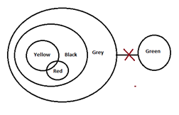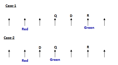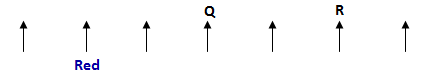 R sits fourth to the right of the one who likes Red and none of them sits at the extreme end of the line.