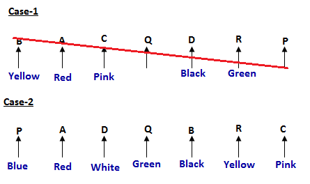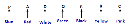 More than three persons sits between the one who likes Yellow and P, who sits at one of the extreme ends of the line. The one who likes White does not sits to the right of C. The one who likes White sits to the right of A.