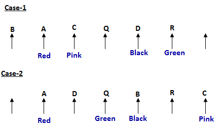B sits second to the left of C, who likes Pink. There are only two persons sitting between A and the one who likes Black.