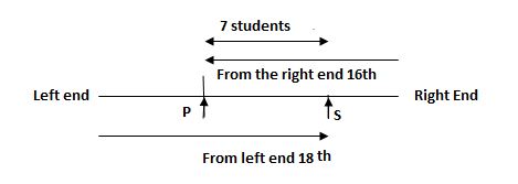 34. In a row of twenty five students facing North. P is 16th from the right end and S is 18th from the left end. How many students are there between P and S?