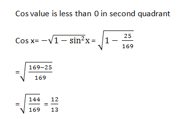 3) if sin x=5/13, 90<x<180. Find the value of cos x.
