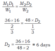 2) A contractor deploys 36 men on a work and in 16 days they complete 2/3 rd of the work.To finish the remaining work he deploys 12 men extra. Now the remaining work will be completed in _________
