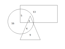 In a class of 50 students, the number of students passed in Maths is represented as Circle and the number of students passed in English is represented as Rectangle and the number of students passed in Economics is represented as triangle.