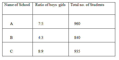 9) What is the sum of number of boys in schools A and B and number of girls in School C?