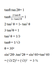 6) If tanθ.tan 2θ= 1, then the value of sin2 2θ+tan2 2θ is equal to __