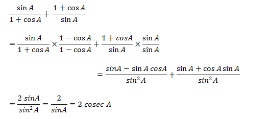 1) Simplify: Sin A/(1+cosA)+(1+cosA)/sin A