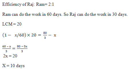 2) Raj is twice as efficient as Ram and Ram can do a piece of work in 60 days. Ram started the work and after a few days Raj joined him. The total work completed in 80/3 days. For how many days did Ram work alone from starting of the work?