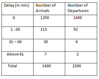 The table given below shows a survey carried out at a railway station for the arrivals/ departure of trains for the month of January 2010.