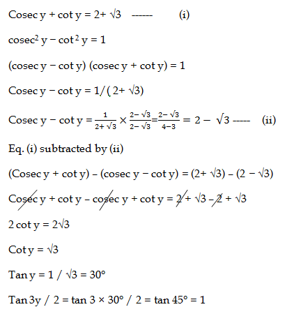 6) If cosec y+ cot y=2+ √3 Find the value of tan 3y/2.