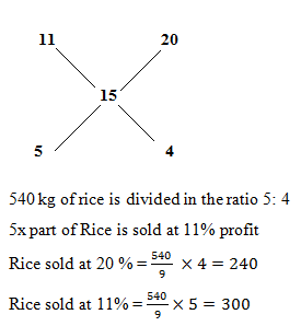 6) A trader had 540 kg of rice. He sold a part of it at 20% profit and the rest at 11% profit, so that he made a total profit of 15%. How much rice (in kg) did he sell at 11% profit?