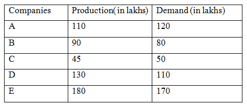 6) What is the difference between the average demand and the average production of the Companies (in lakhs)?