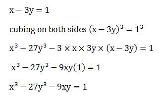 10) If x– 3y= 1, then find the value of x3 – 27y3 – 9xy is –