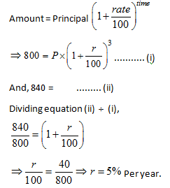 7) Sameer invested a sum of money at compound interest. Maturity amount after 3 years is Rs. 8000 and amount after 4 years is Rs. 8400. The rate of interest per annum is: