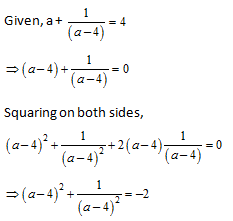 4) If a + (1/ (a – 4)) = 4 then find the value of (a –4)2 +1/ (a – 4)2.