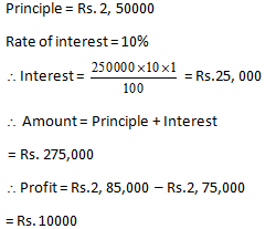 12) A man buys a car for Rs. 2, 50,000 in cash and sells at Rs. 2, 85,000 in credit of 1 year. If the rate of interest is 10% per annum, then how much profit or loss will he have?