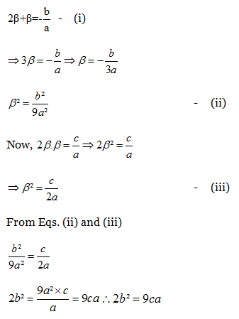 10) If one root of the equation ax² + bx + c = 0 is double of the other, then 2b² is equal to