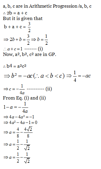6) Suppose a, b and c are in Arithmetic Progression and a², b² and c² are in Geometric Progression. If a < b < c and a + b + c = , then the value of a is equal to: