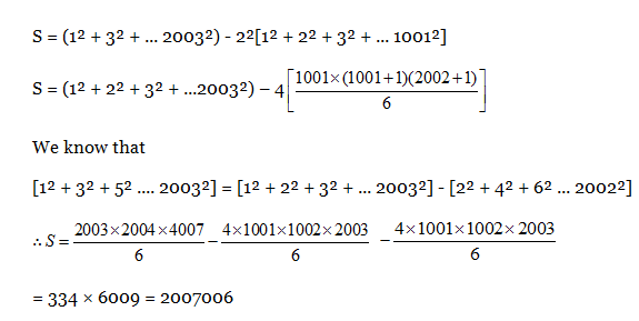 7) Sum of the series 1² – 2² + 3² – 4² + … + 2001² – 2002² + 2003² is: