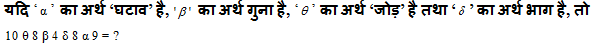 10) यदि 6 * 9 – 4 = 58 तथा 3 * 9 – 7 = 34 हो, तो समीकरण A * 4 –91 में का ‘A’ मान क्या है?