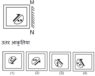 दर्पण को AB रेखा पर रखने पर प्रश्न आकृति उत्तर आकृति (3) जैसी दिखाई देगी।