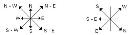 यह आरेखों से स्पष्ट है कि पश्चिम का नया नाम दक्षिण-पूर्व बन जाएगा