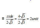 9) भुजा 4√3 इकाई वाली ABC की अन्तः वृत्त की त्रिज्या x से.मी. है, तब x का मान ज्ञात कीजिए