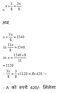 11) 1540 रुपये की राशि को A, B और C के बीच इस तरह से विभाजित किया गया है कि A को B और C को जो प्राप्त होता है उसका मिलता है, फिर A का हिस्सा होगा?