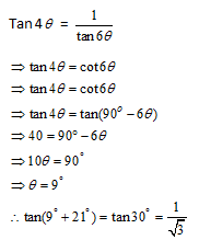 8) यदि tan 4θ. tan 6θ = 1, तो tan (θ + 21°)का मान होगा?