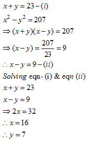 5) यदि दो संख्याओं का योग 23 है, और उनके वर्ग के बीच अंतर 207 है। संख्याएं ज्ञात कीजिए।