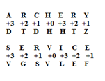 1) If ARCHERY is coded as DTDHHTZ then how the word SERVICE will be coded?