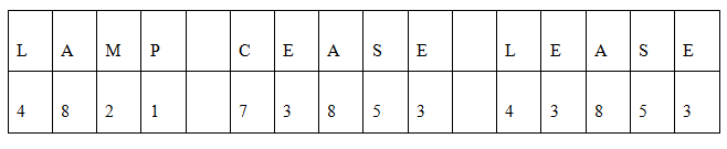 8) If ‘LAMP’ is coded as ‘4821’, ‘CEASE’ is coded as ‘73853’ then what will be the code for ‘LEASE’?