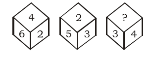 3) Three positions of a dice are given below. Which of the following is in the place’ ?’