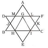 There are 11 triangles in the given figure: – ABC, DEF, GHI, AML, LFK, KCI, IEH, DGH, GFI, BHJ and MDJ.
