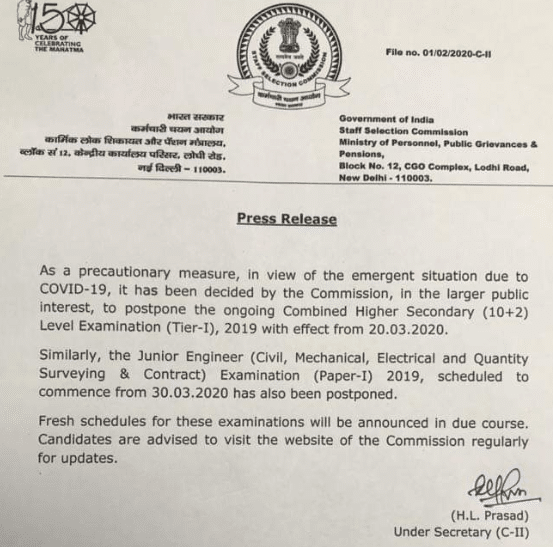 SSC JE Exam Date 2020: SSC JE Exam Date 2020 Postponed along with SSC CHSL Exam will also get postponed. Details regarding the Postponing of the JE & CHSL Exam which will be scheduled in the upcoming days have given below for your reference.