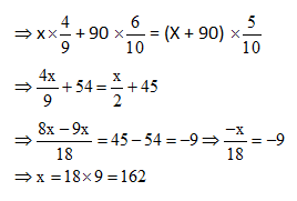 10) How many liters of a solution containing milk and water in the ratio 4: 5 should be added to 90 liters of 60% milk solution in order to get 50% milk solution?