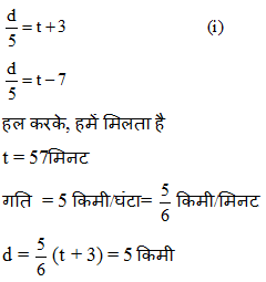 10) एक कर्मचारी अपने कारखाने तक कारखाने तक अपनी गति से 3 मिनट देर से अपने फैक्ट्री तक पहुंचता है, यह 5 किमी प्रति घंटे है। अगर वह 6 किमी प्रति घंटे की गति से चलता है, तो वह 7 मिनट पहले फैक्ट्री तक पहुंचता है। अपने घर से फैक्ट्री की दूरी है: