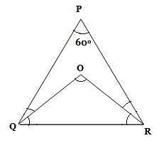 5) एक त्रिभुज PQRमें, ∆PQR के केंद्र में O है। यदि ∠P = 600है| ∠QOR ज्ञात कीजिये।